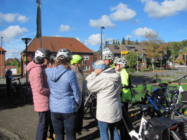 Bei bestem Fahrradwetter machten wir uns schon ab 12.30 Uhr mit insgesamt neun Personen auf den Weg durch die Mersch, Bergbossendorf, am Westuferpark und an der Stadtmühle vorbei, durch Sythen-Stockwiese und -Grotekamp, durch den Sythener Brook, Hausdülmen, das Nordwestviertel von Dülmen und durch Weddern zur Klosterschänke in Karthaus.